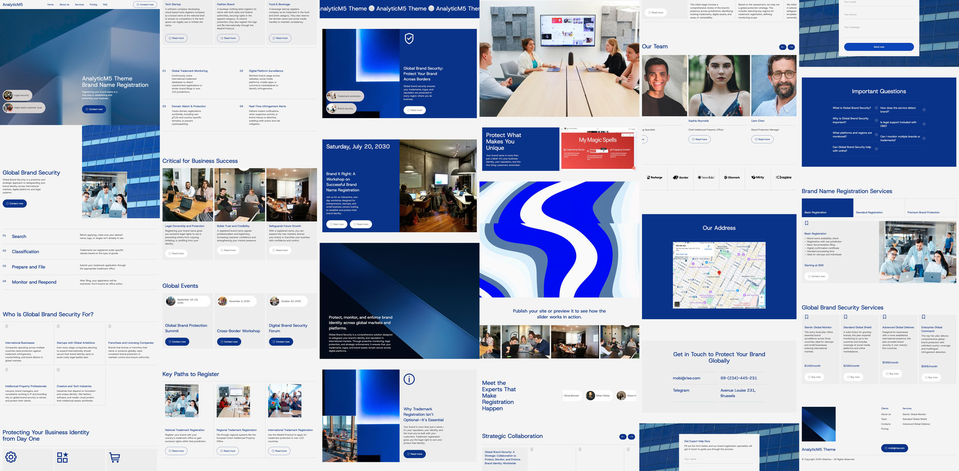 AnalyticM5 is a modern theme ideal for landing pages for corporate services, analytics tools, cybersecurity offerings, compliance overviews, legal tech products, brand protection campaigns, risk management promos, professional reports, and consulting showcases.