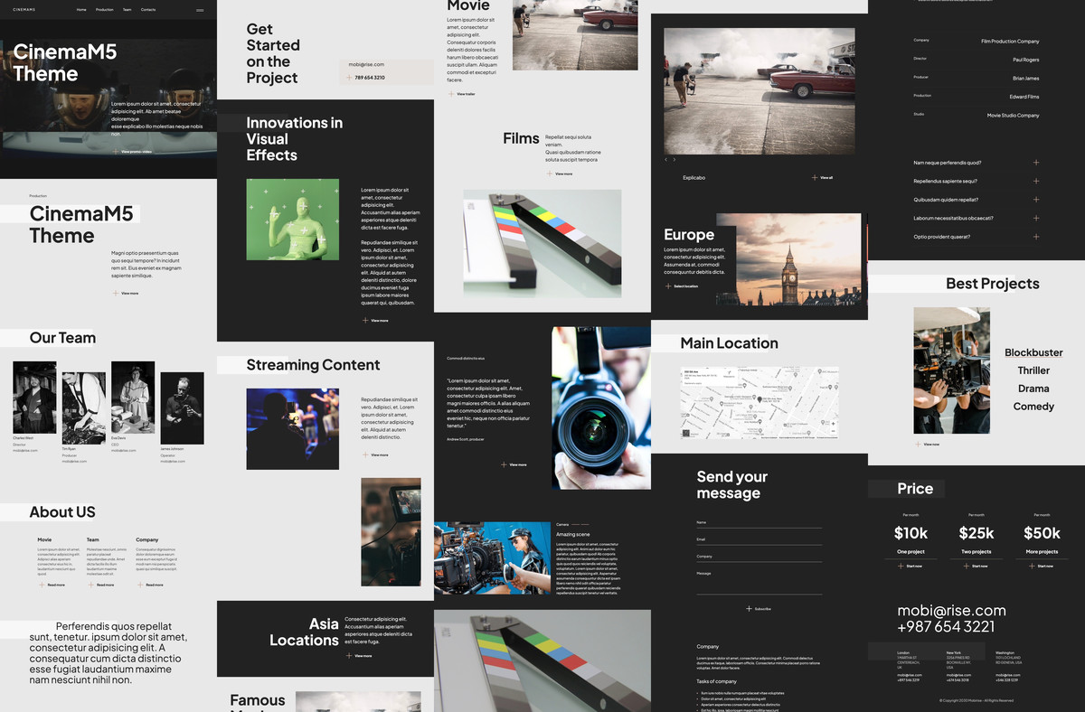 CinemaM5 is a theme for a visual effects production, magazine, portfolio, wedding shoots, modeling portfolio, movie, film studio, filmmaker, actor, movie production, movie studio, film production company, videographer, video blogs, blogging, videographers, vlogs.