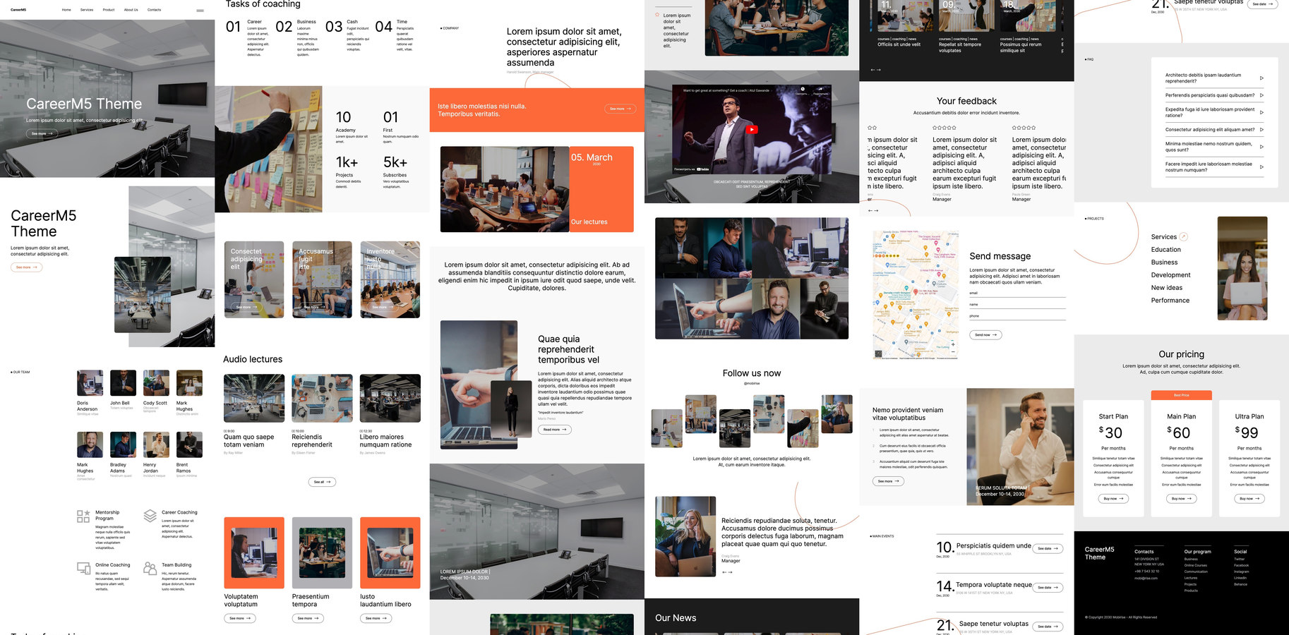 CareerM5 is a theme for coaches, speakers, leaders, career coaching service, mentors, copywriters, course creators, online mentorship program, online tutors, business coaching.
