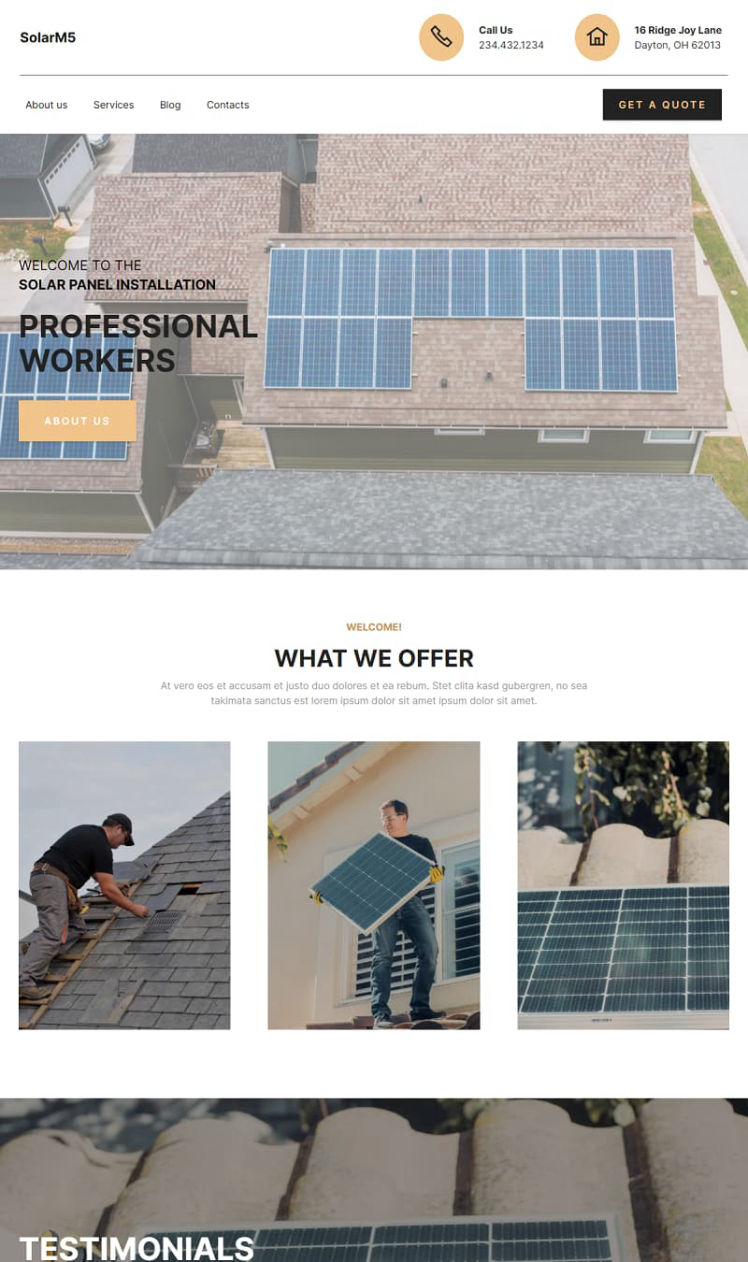SolarM5 comes with a modern set of Bootstrap 5 blocks for technicians and agencies and firms that make solar panels. It makes your site stand out with non-standard content layout and special hover animation.