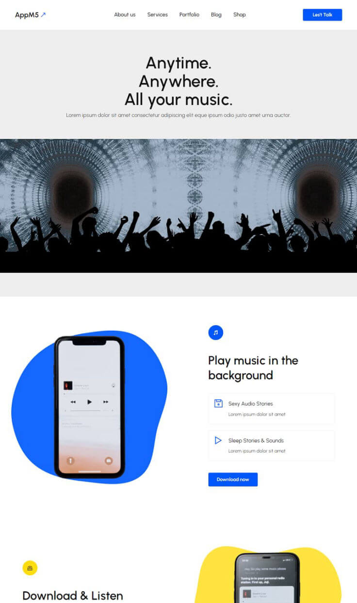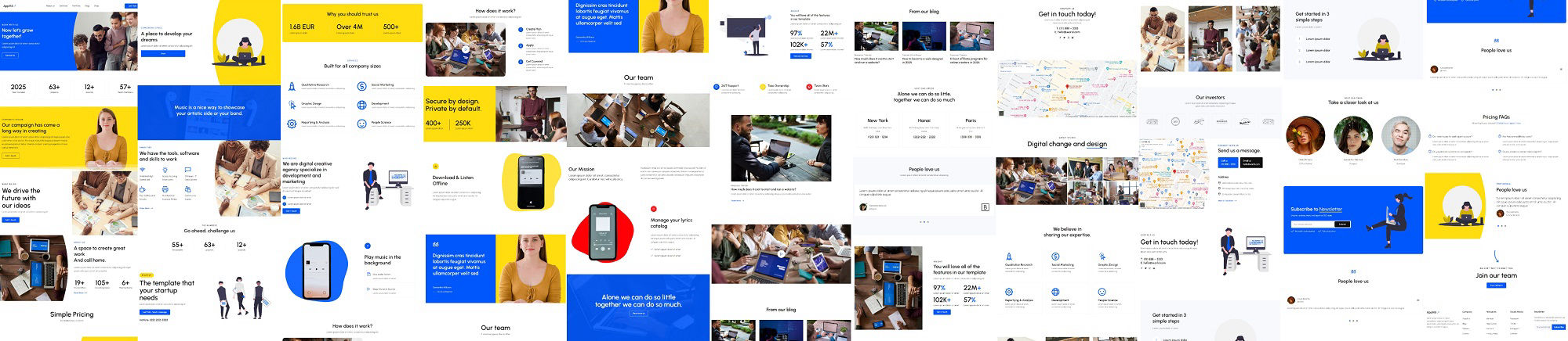 AppM5 comes with a nice set of Bootstrap 5 blocks for technicians and agencies. It makes your site stand out with transparent backgrounds and vibrant color combinations.