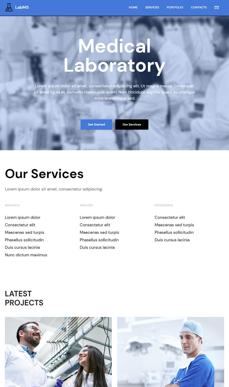 LabM5 is a specially created theme for medical institutions, laboratories and professionals involved in scientific research. A carefully selected set of Bootstrap 5 blocks will allow you to fully present specialized and complex information.