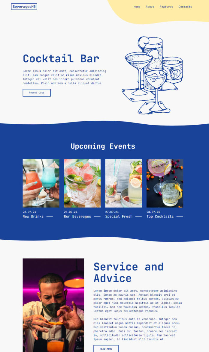 BeverageM5 provides you simple and eye-pleasing Bootstrap 5 designs that perfectly match businesses like restaurants and bars. Due to wave animations, it will definitely catch your clients' attention.