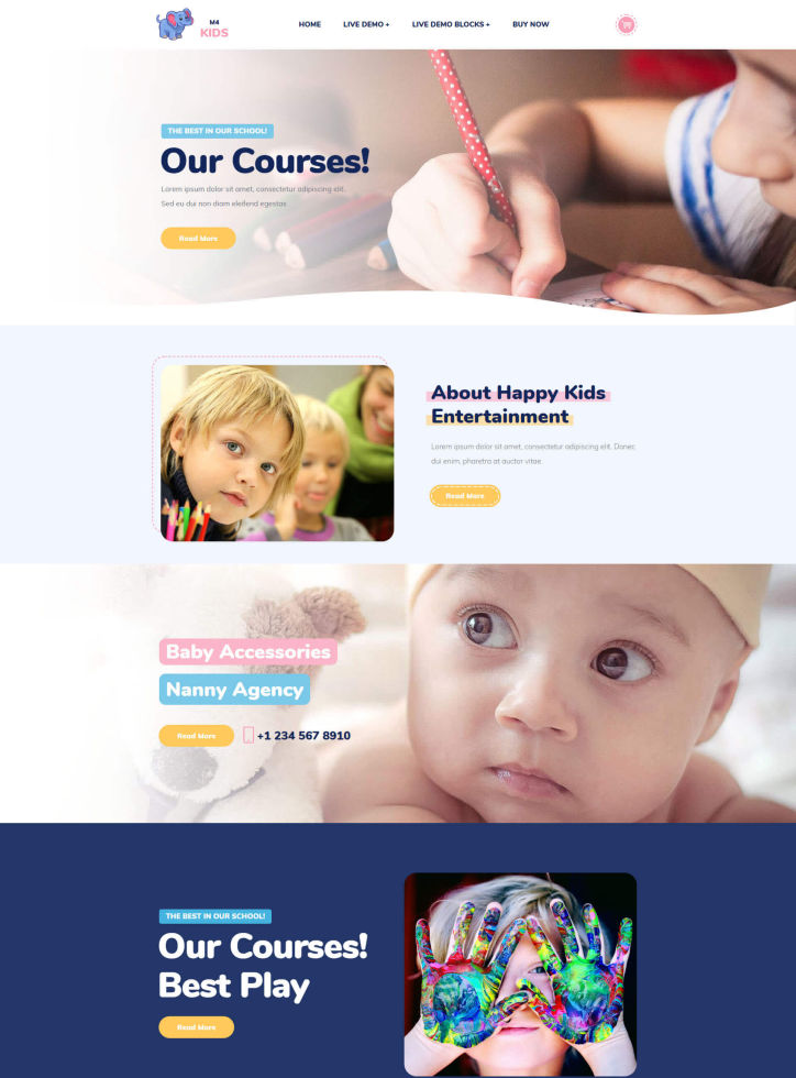 A cute website template perfect for preschools and babysitting. It also suits online stores selling children clothes and toys. Create a kids related site with ease!
