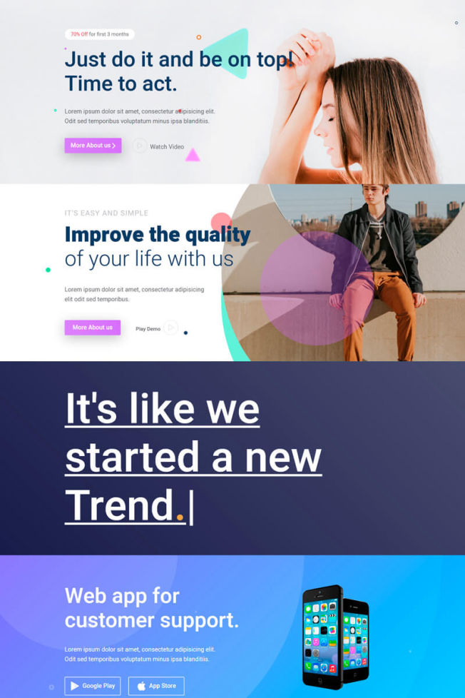 ModernM4 is the perfect solution for those who are looking to build a catchy modern-looking website. Get the theme now and wow your audience with your own trendy website!