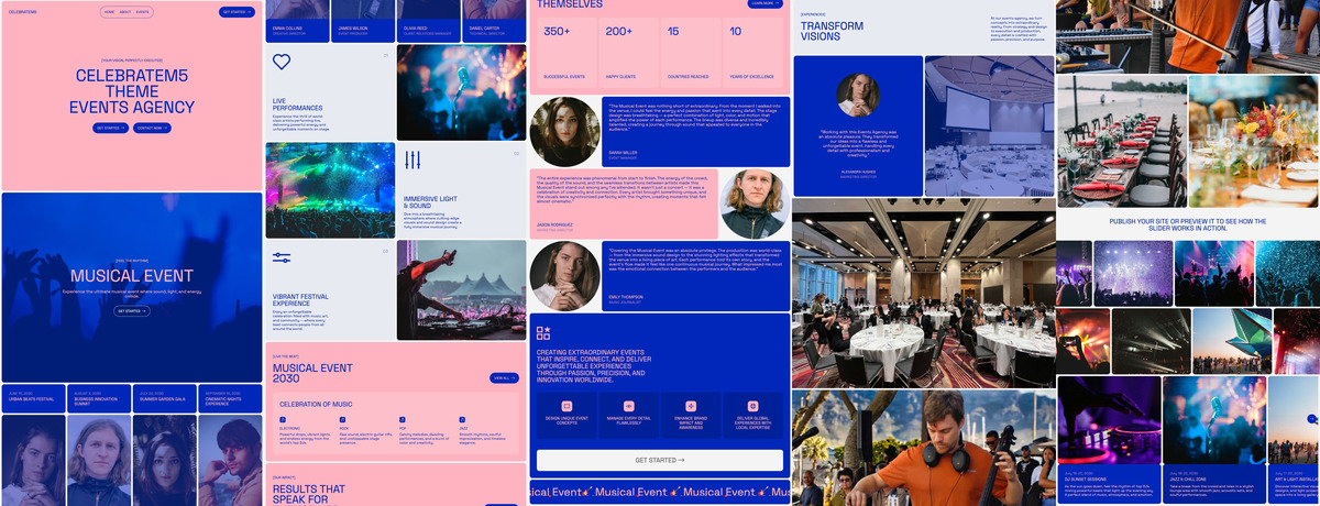 CelebrateM5 is a theme for event agencies, music festivals, concert organizers, wedding planners, party services, corporate event coordinators, DJs, entertainers, production companies, and venues promoting live shows and celebrations.
