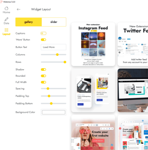 Mobirise app and go Menu-> Extensions. Find yellow Instagram Feed and add it to the app.