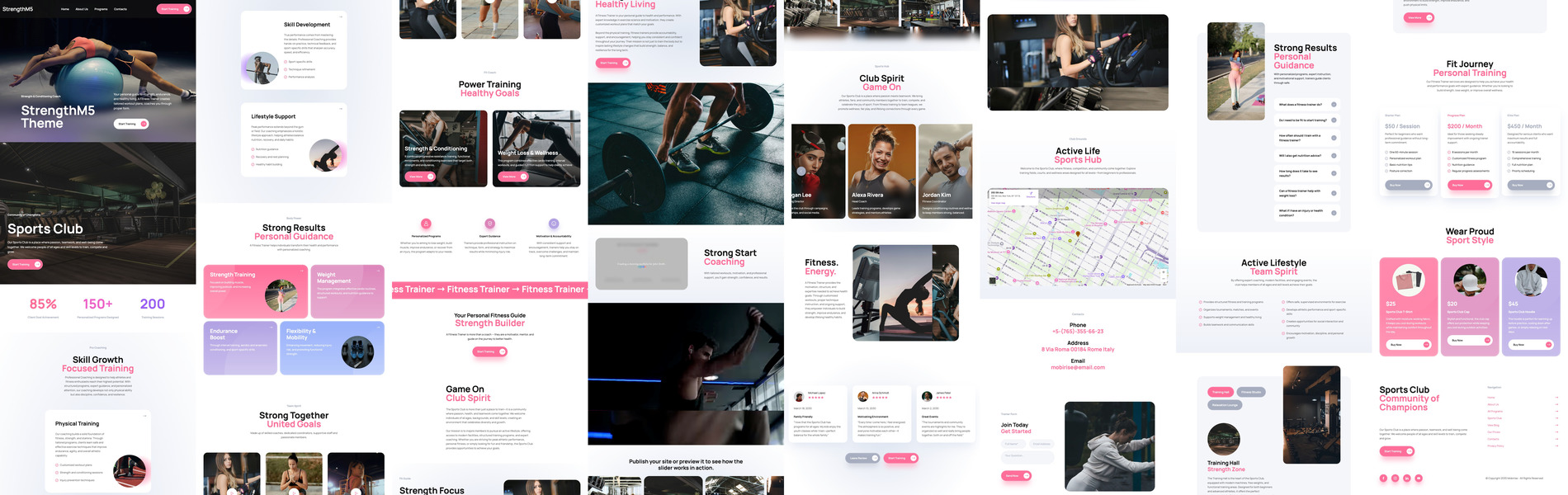 Theme for fitness centers, gyms, yoga studios, pilates classes, personal trainers, wellness retreats, martial arts schools, dance and movement studios, sports clubs, cross-training programs, health and nutrition coaches, and physiotherapy or rehabilitation services.