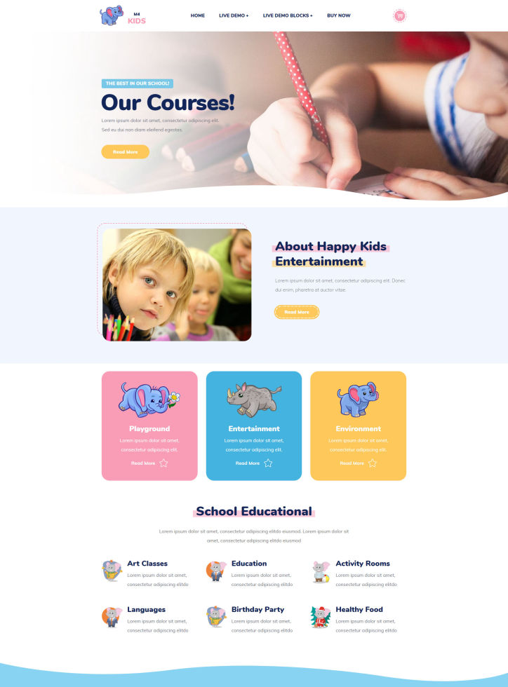 A cute website template perfect for preschools and babysitting. It also suits online stores selling children clothes and toys. Create a kids related site with ease!